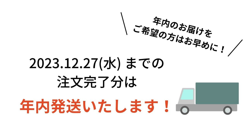 12月27日(木)までのご注文は年内に発送予定です。年内最終発送は12月30日(土)になります。
