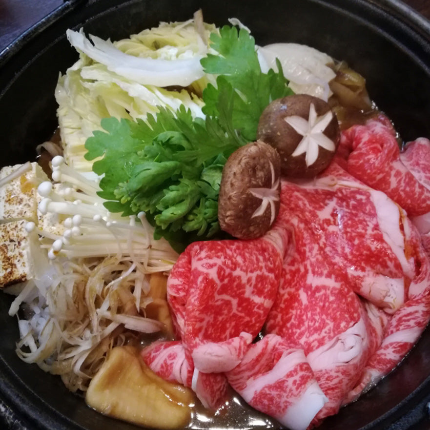 米沢牛もも肉(360g)、白菜、えのき、せり、生しいたけ、豆腐、しらたき、長ねぎ、笹がきごぼう、自家製すき焼きたれ、生たまご(3個)