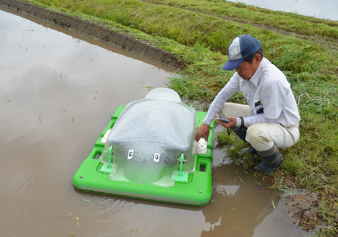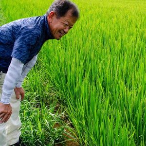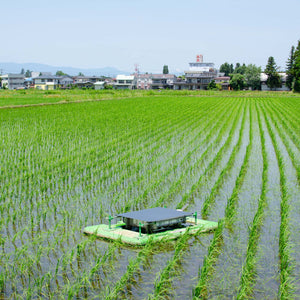 アイガモロボ™とは、有機米デザイン(株)が開発した自動抑草ロボットです。太陽光パネルで動力を生み出し、田んぼの水と土をかき混ぜ続けることで雑草の光合成を抑えます。本商品では、アイガモロボ®農法によって無農薬無化学肥料栽培を行った山形県産出羽燦々を原料としました。