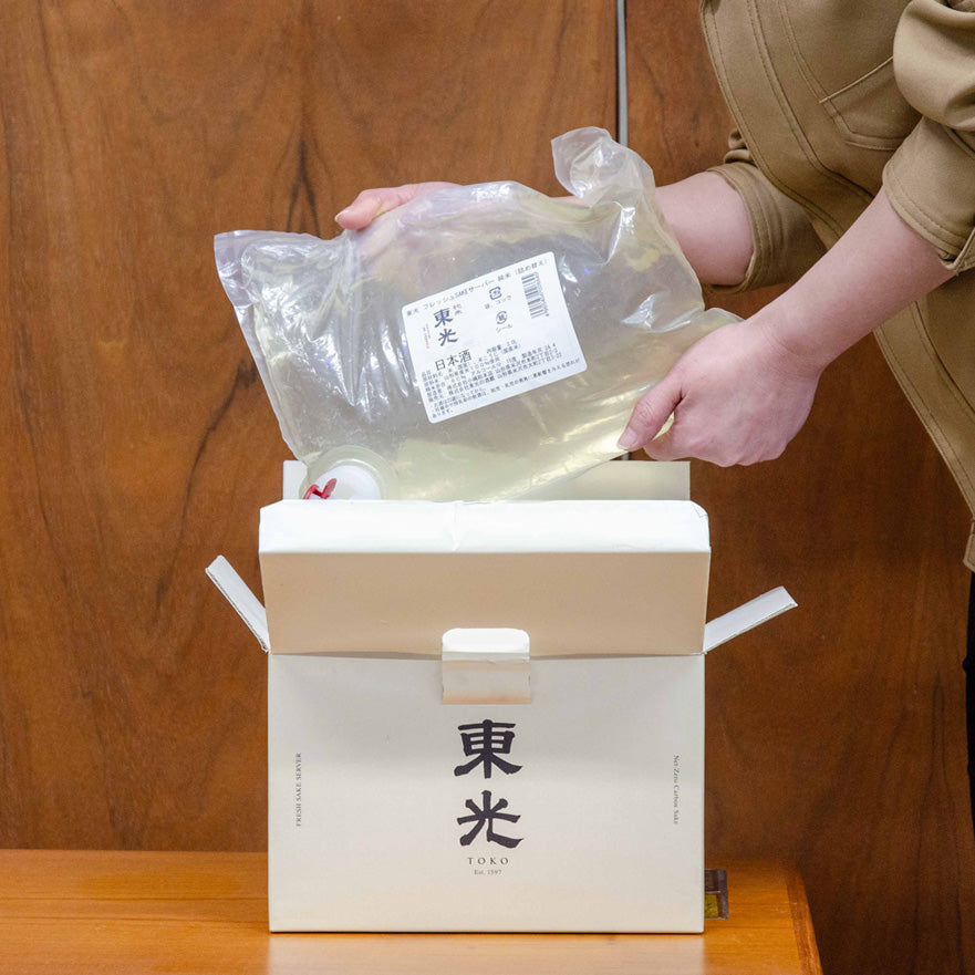お酒のフレッシュさが維持され、よりサステナブルな容器として『東光フレッシュSAKEサーバー』を発売しました。※こちらは詰め替え用パウチのページです。