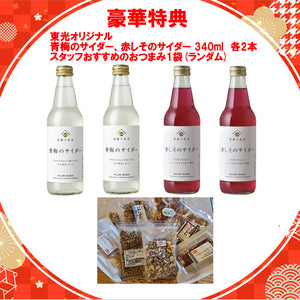 さらに購入特典として、ノンアルコールの東光オリジナルサイダー2種を各2本と、おつまみをご用意いたしました。年末年始、ご家族やご友人が集うひとときを、みんなで楽しめるセットです。価格以上のうれしい内容で届いてからのお楽しみ~♪